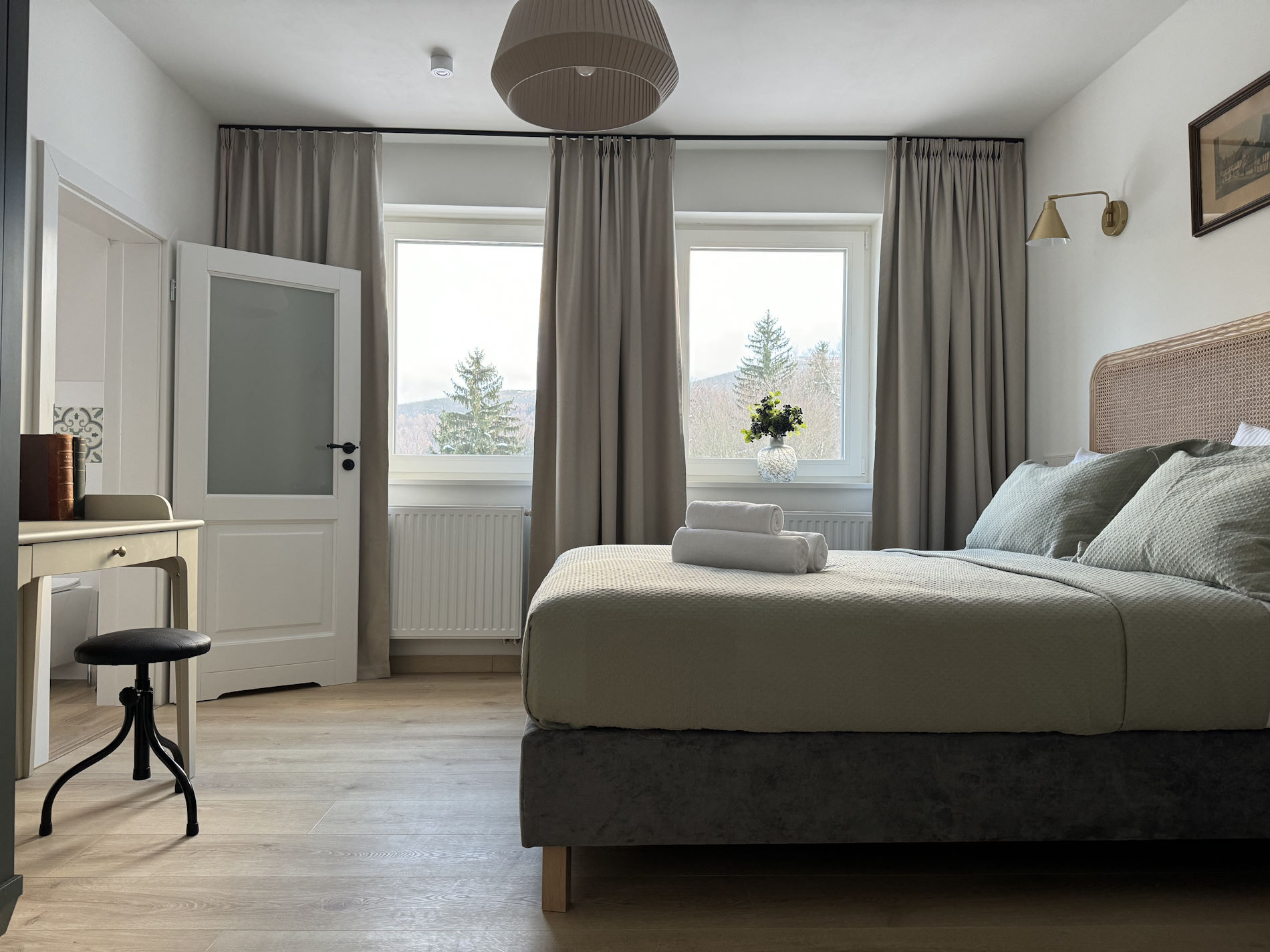 - Apartament słoneczny z balkonem z widokiem na dolinę.