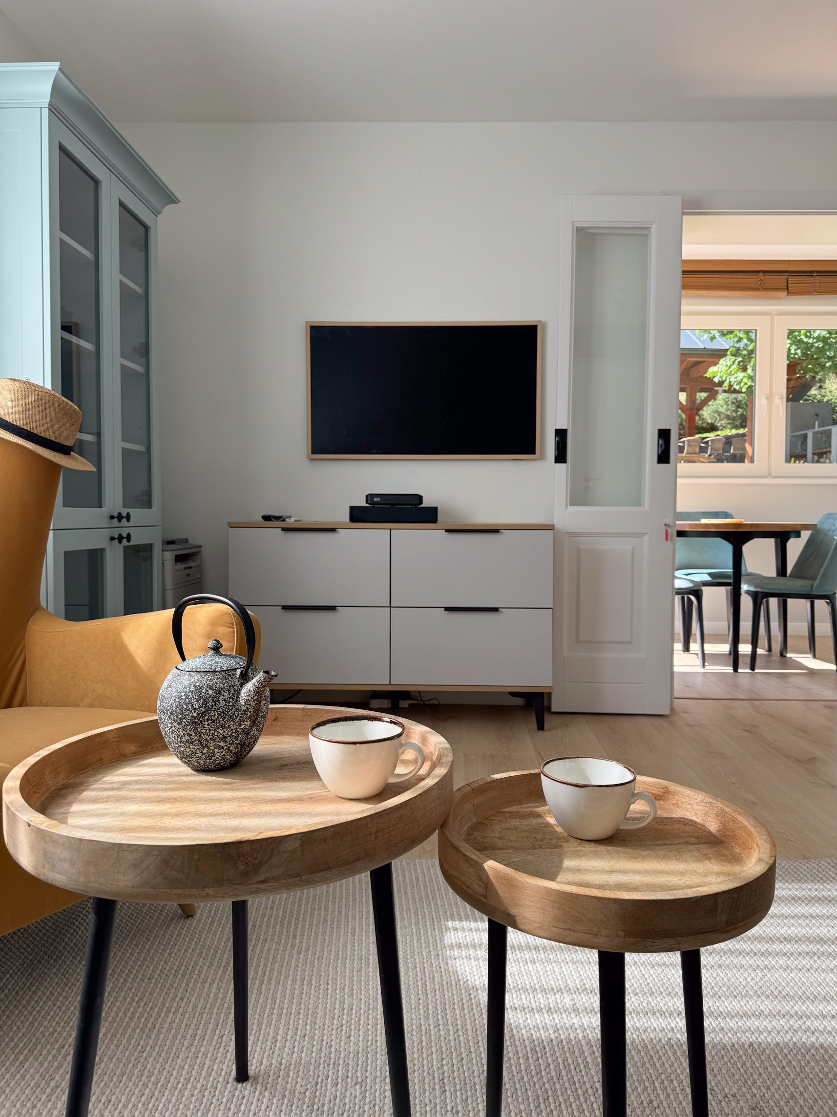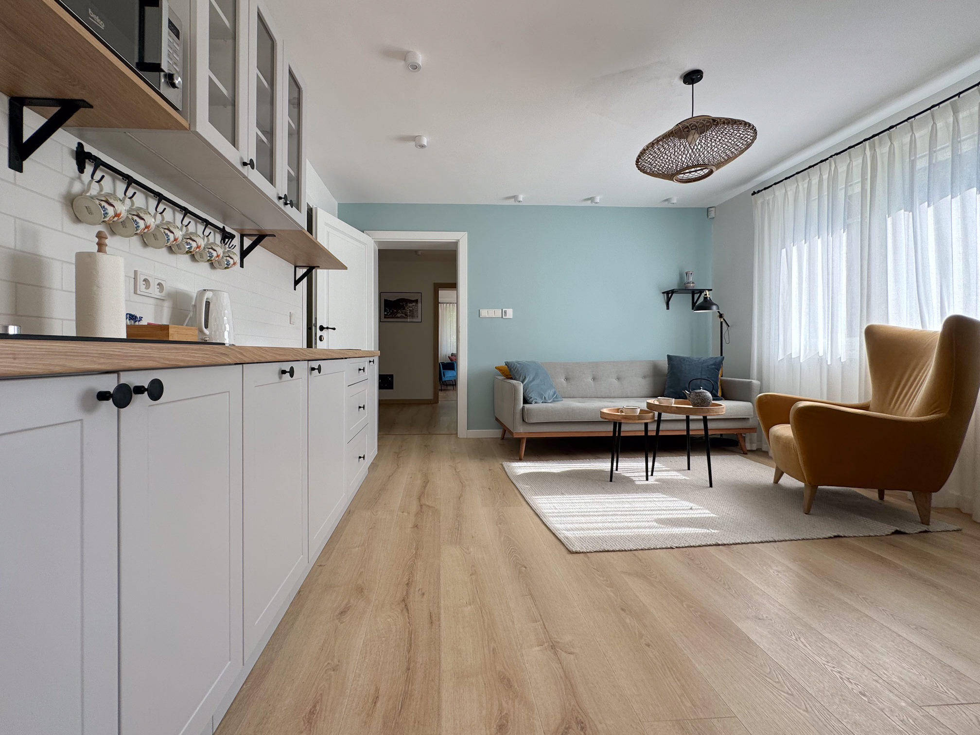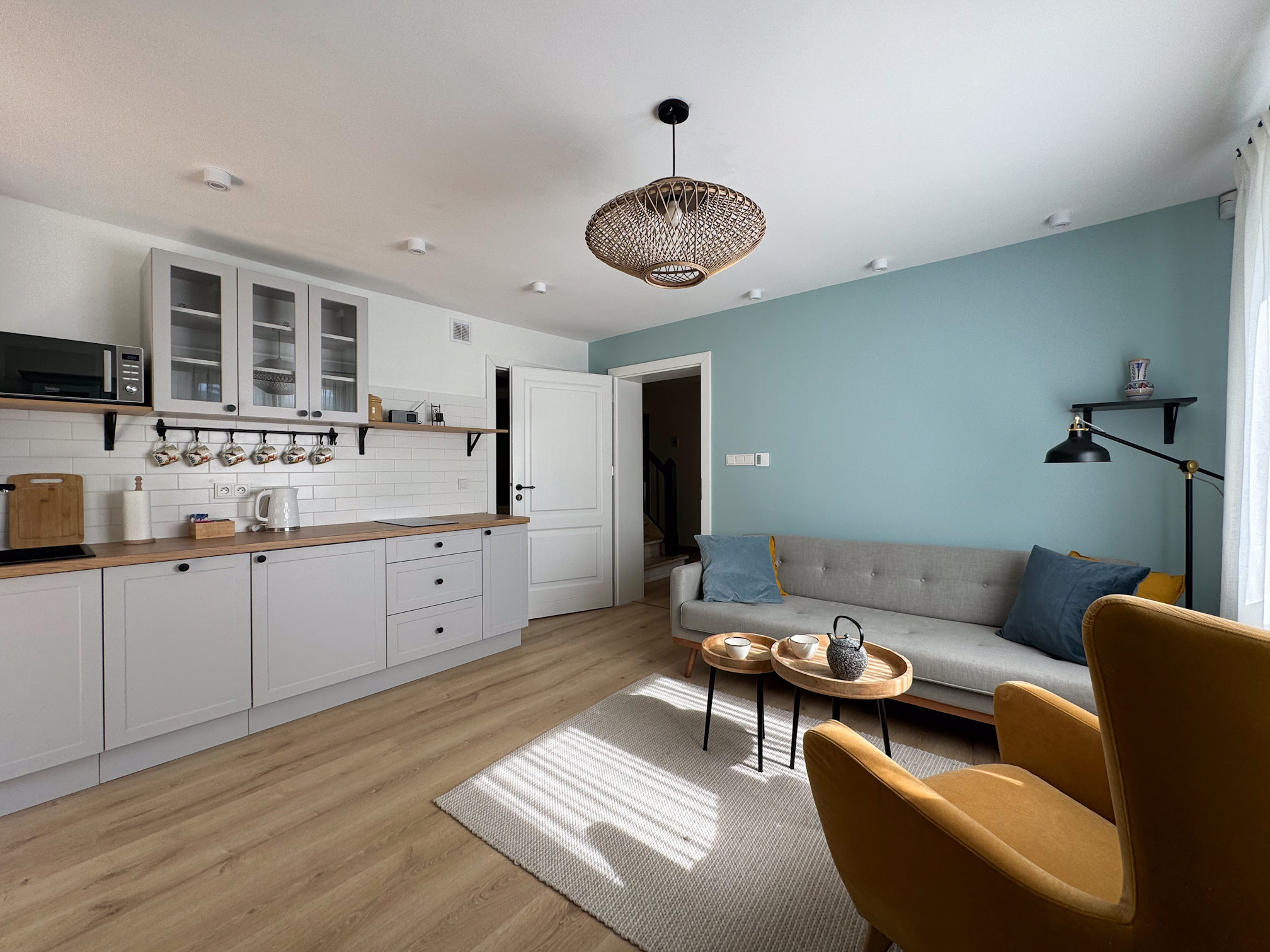 Do holu przylega jeszcze jeden apartament z osobnym wejściem na zewnątrz, który można wynająć za dodatkową opłatą. Apartament ten składa się z obszernej łazienki z wanną i kabiną prysznicową, sypialni z podwójnym łóżkiem, salonu z kompletnie wyposażonym aneksem kuchennym (lodówka, płyta indukcyjna, mikrofalówka), TV satelitarną i Wi-Fi. Salon połączony jest z drzwiami z werandą , z której jest osobne wyjście do ogrodu.